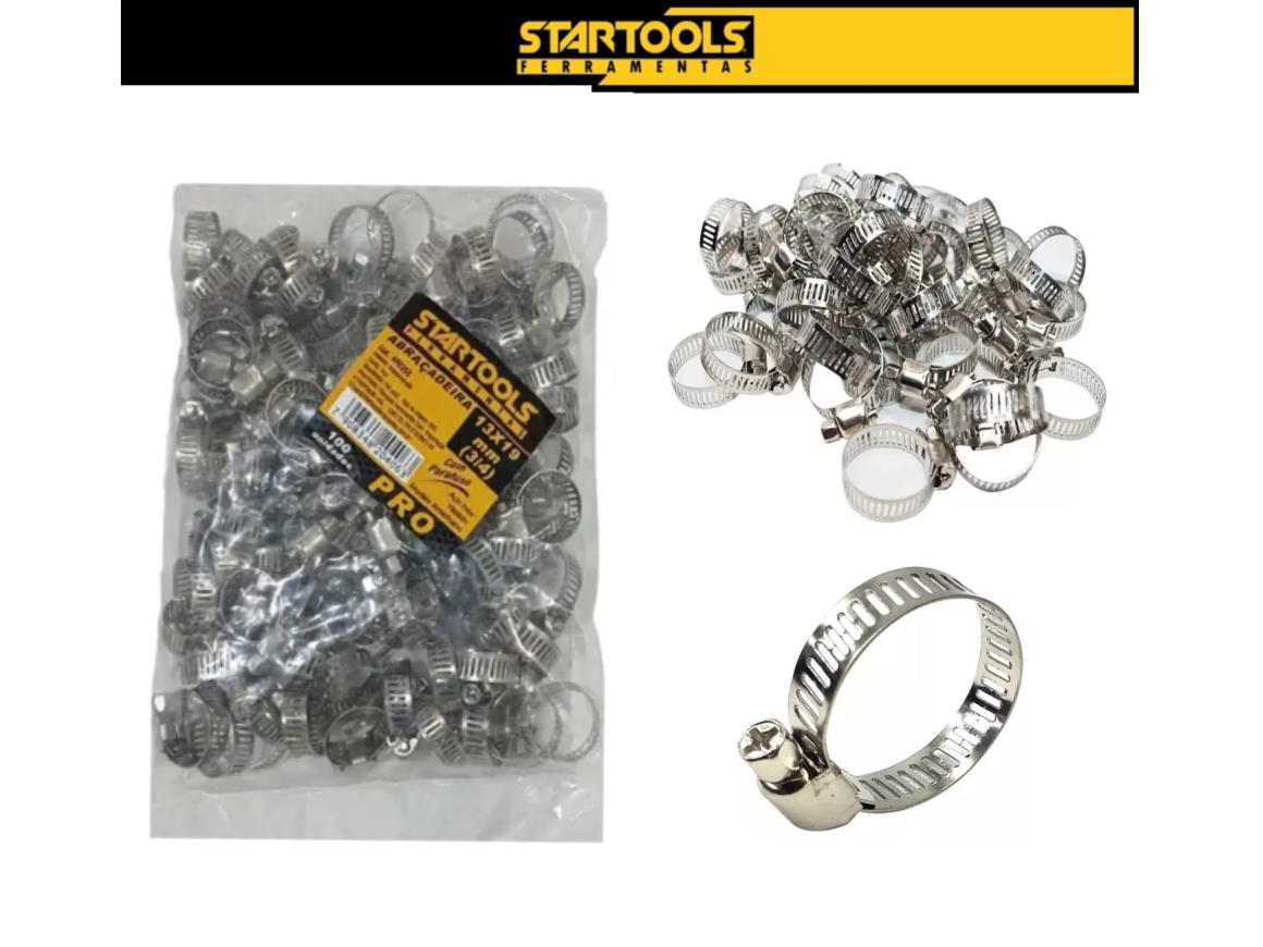 ABRAÇADEIRA DE AÇO INOX 13X19 MM AMERICANO PACOTE C/ 100 PCS STARTOOLS AR0256