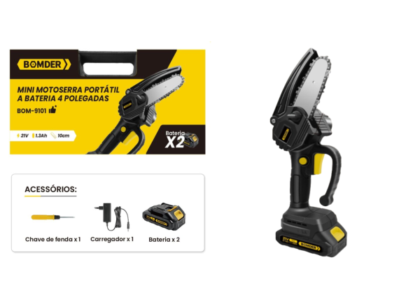 MINI MOTOSSERRA NA MALETA 4" RECARREGAVEL C/2 BATERIAS 21V BOM-9101