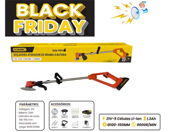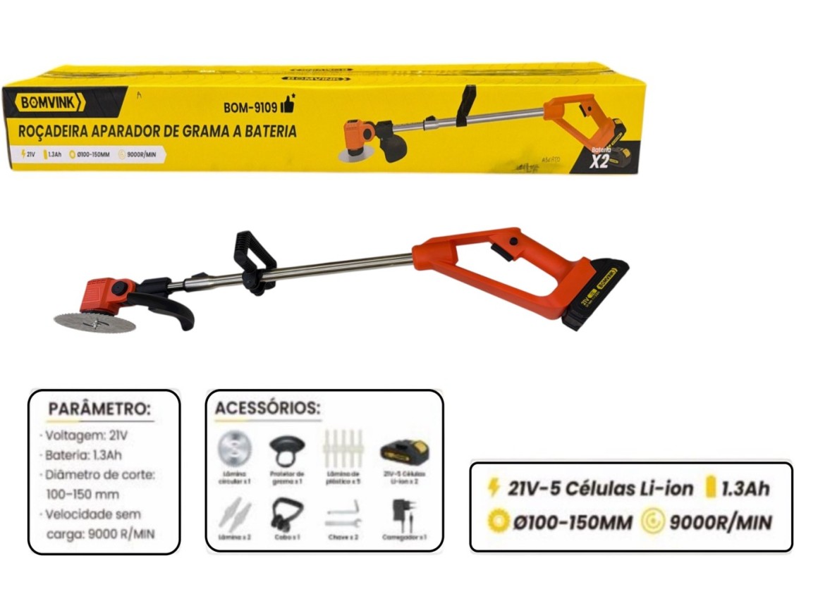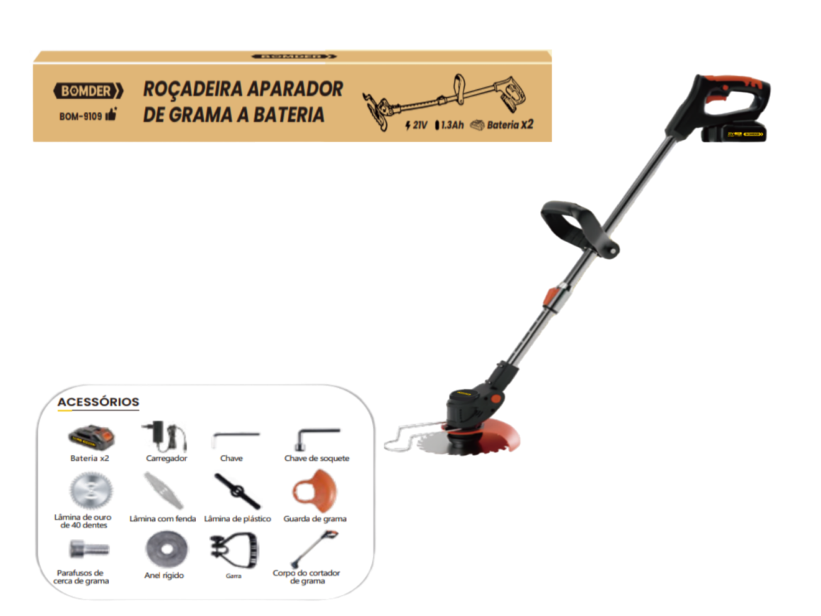 ROÇADEIRA APARADOR DE GRAMA RECARREGAVEL C/2 BATERIAS 21V BOM-9109