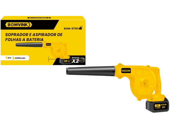 SOPRADOR E ASPIRADOR RECARREGAVEL C/2 BATERIAS 21V BOM-9709