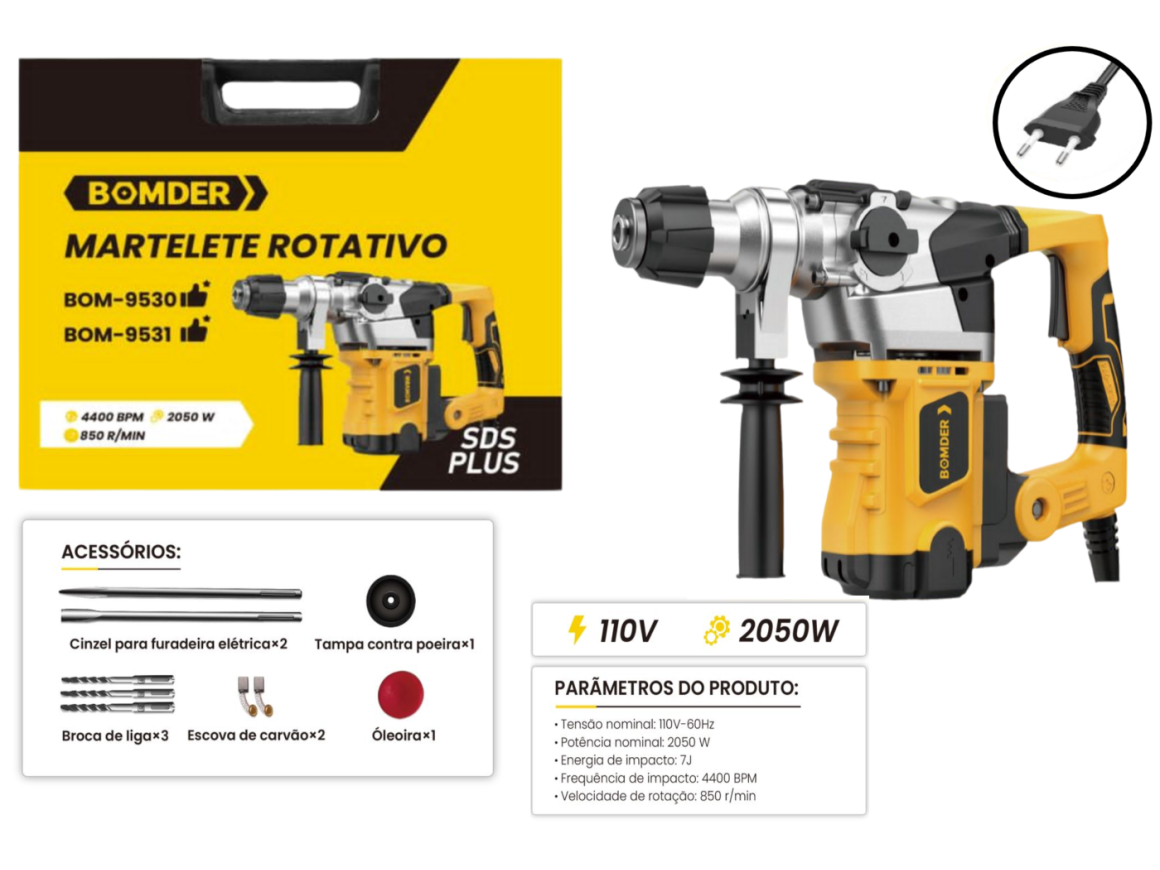 MARTELETE ROTATIVO ELETRICO 1850W 110V 4400 BPM BOM-9531