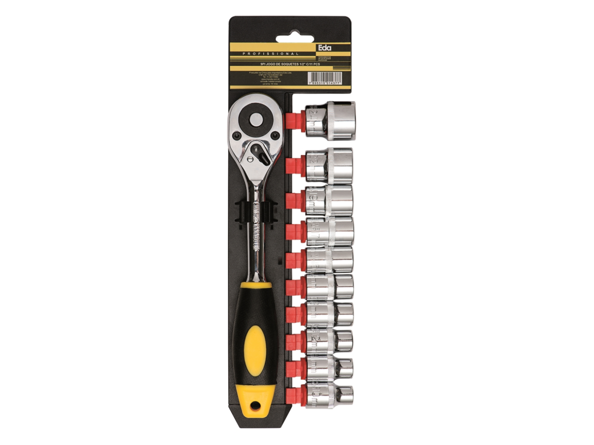 KIT FERRAMENTAS SOQUETES ENCAIXE DE 1/2" COM 11 PÇS CR-V EDA 9PI 014377