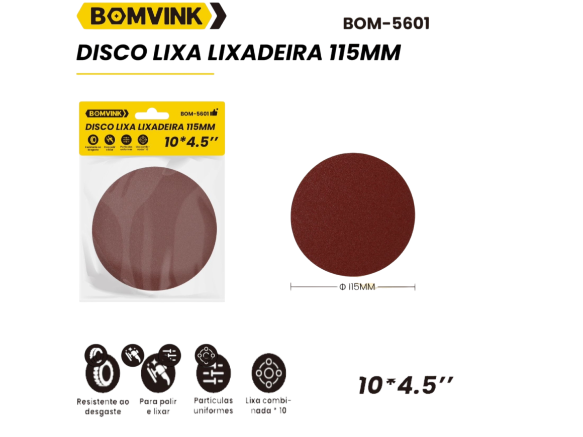 DISCO DE LIXA COM VELCRO MISTA C/10 PCS 4.5" 115MM BOM-5601