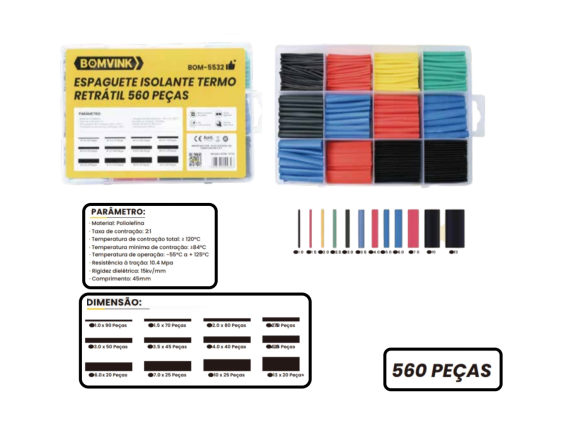 KIT MALETA ESPAGUETE ISOLANTE TERMO RETRATIL 560 PCS BOM-5532
