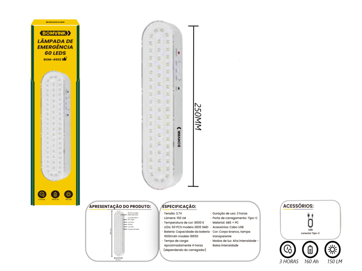 LAMPADA DE EMERGENCIA 60 LEDS BOM-4502