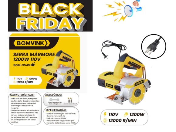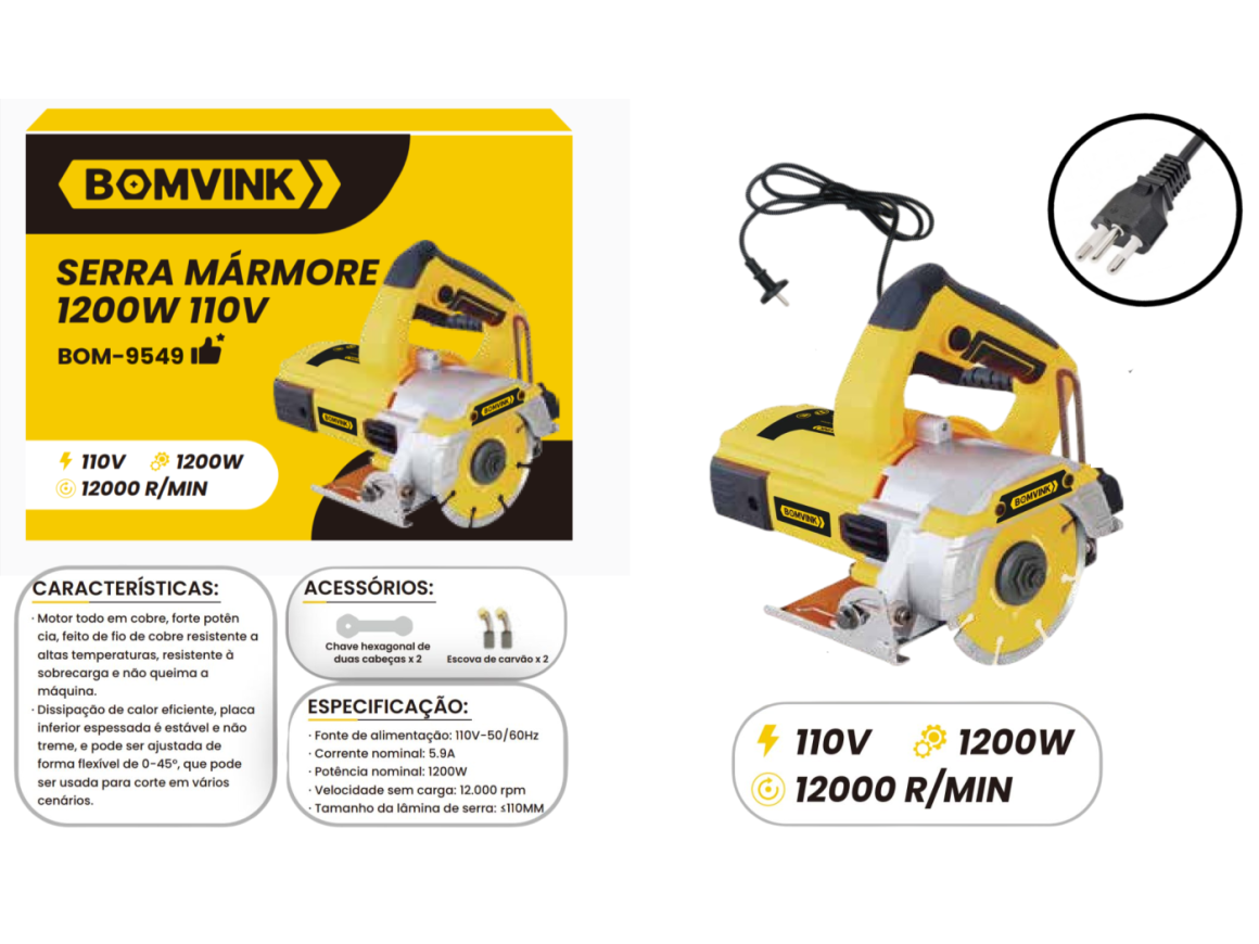 CONTEÚDO DA EMBALAGEM: Serra Mármore BOM-9549 + Acessórios + Manual de Instruções.