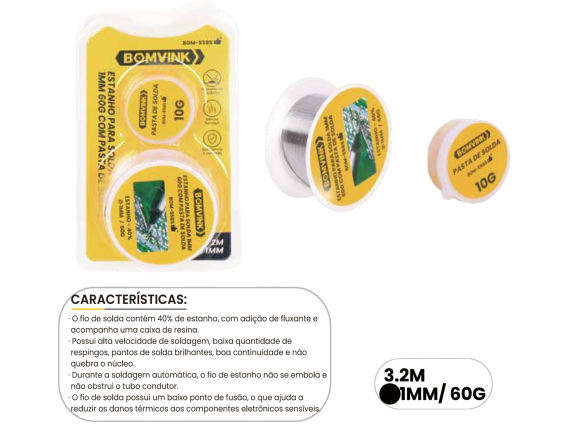 ESTANHO PARA SOLDA 1 MM 60G COM PASTA DE 10G BOM-5585
