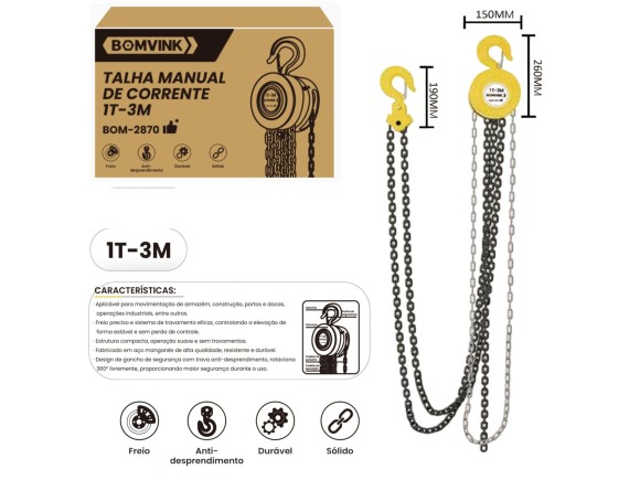 TALHA MANUAL DE CORRENTE 1T-3M BOM-2870