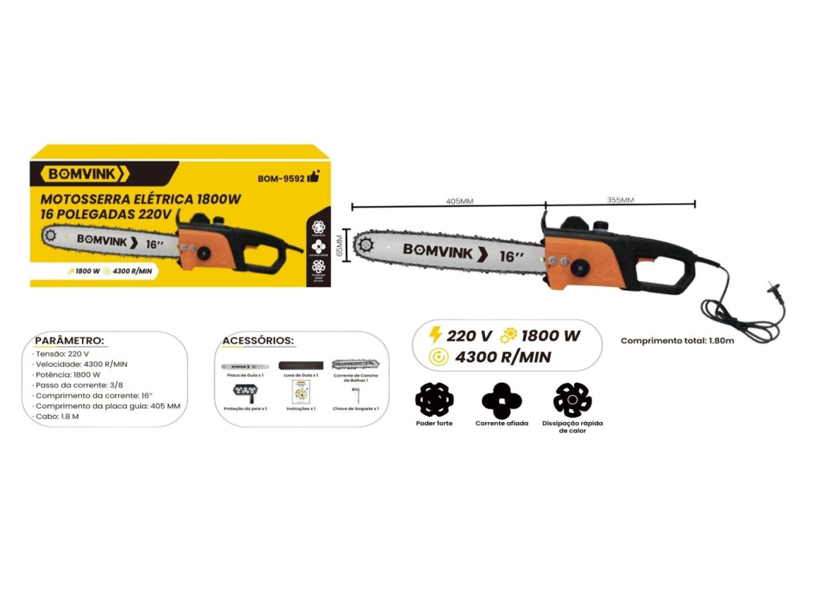 MOTOSSERRA ELETRICA 16" POLEGADAS 220V 1800W BOM-9592