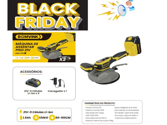 MAQUINA DE ASSENTAR PISO C/ VENTOSA RECARREGAVEL C/2 BATERIAS 21V BOM-9721