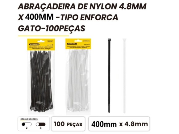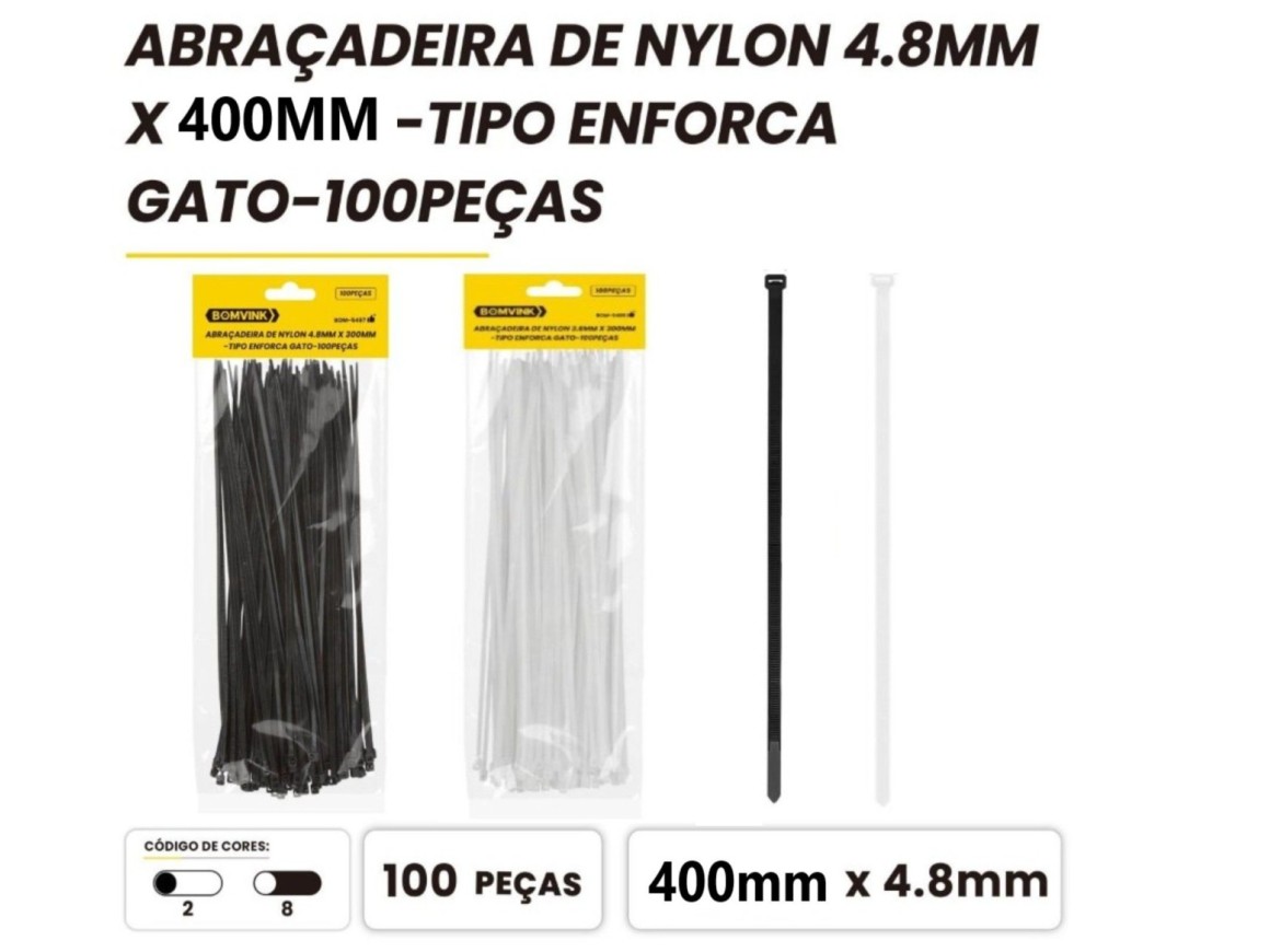 ABRAÇADEIRA DE NYLON ENFORCA GATO C/ 100 PCS 4,8X400MM BOM-5498