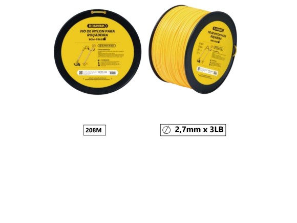 FIO DE NYLON PARA ROÇADEIRA 2,7MM X 208M ROLO BOM-5562