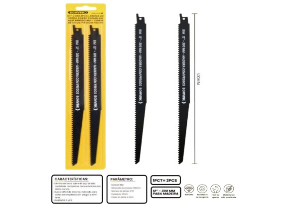 CONJUNTO LAMINA DE SERRA SABRE COM 2 PCS 300MM AÇO RAPIDO M2 BOM-5136