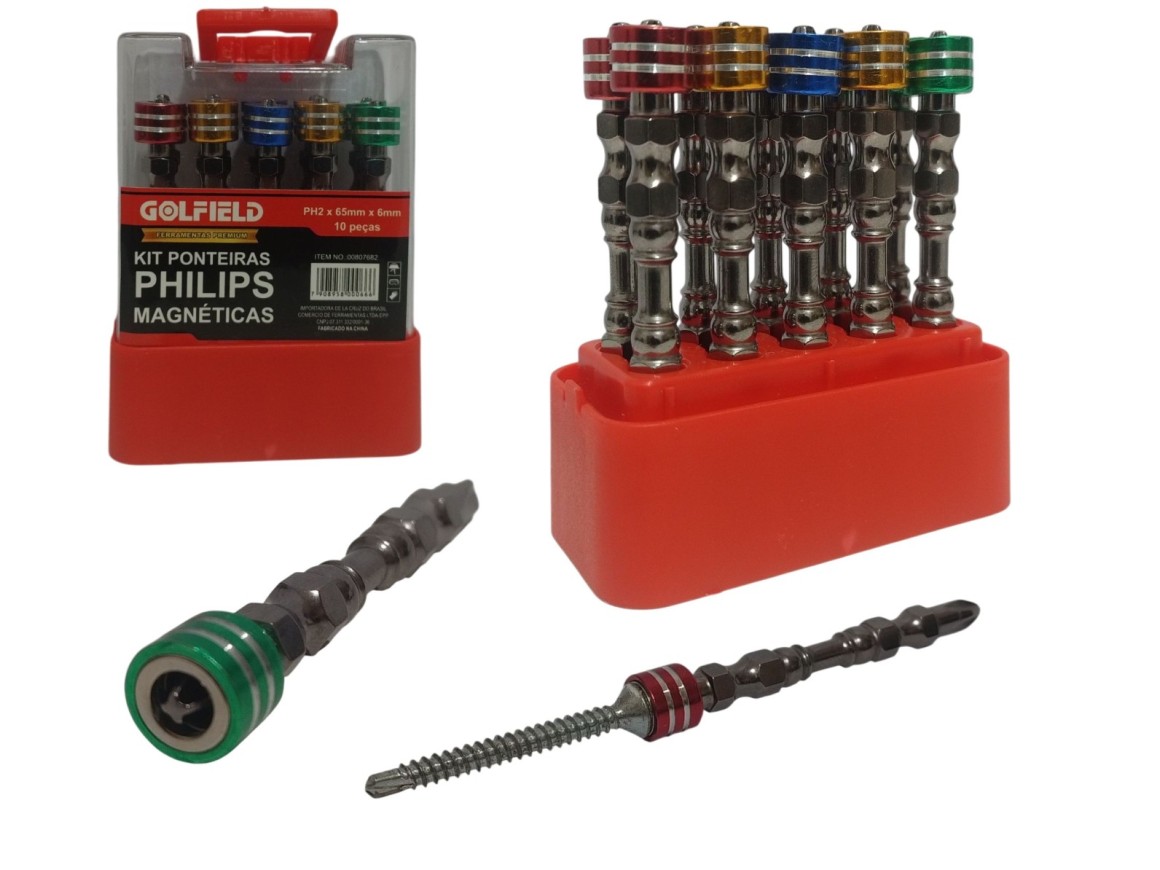 KIT DE BITS PHILIPS 10 PCS MAGNÉTICAS PH2 X 65 MM GOLFIELD 807682