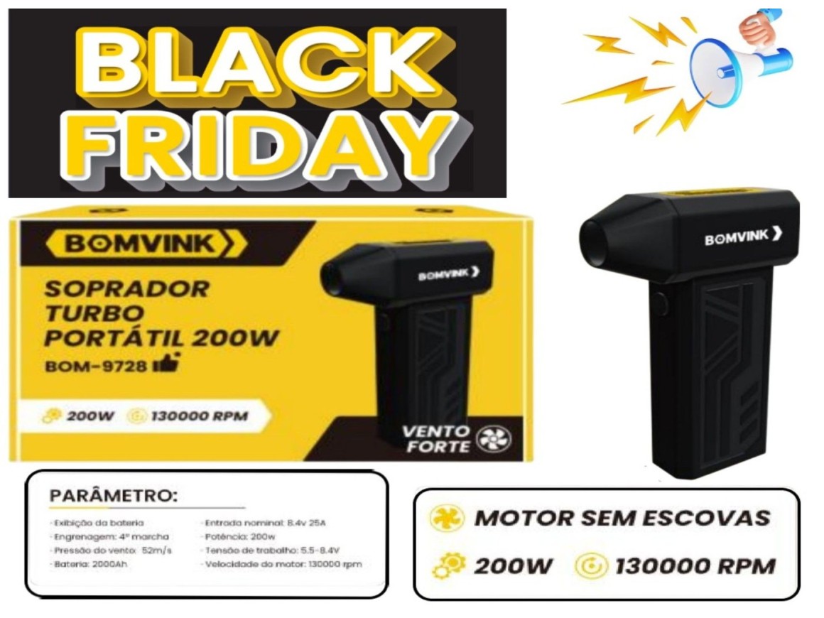 SOPRADOR TURBO PORTATIL RECARREGAVEL 200W 130000 RPM BOM-9728