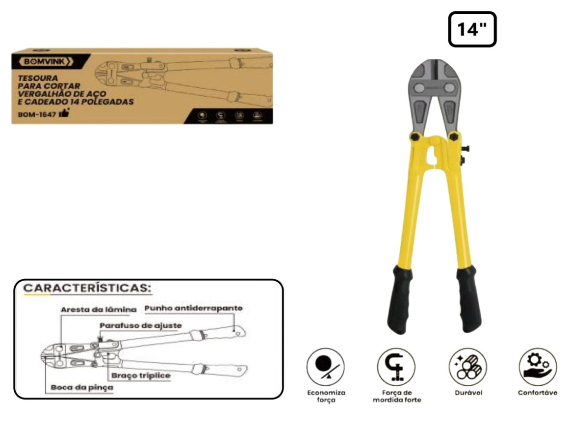TESOURA PARA CORTAR FERRO "VERGALHÃO" 14" BOM-1647